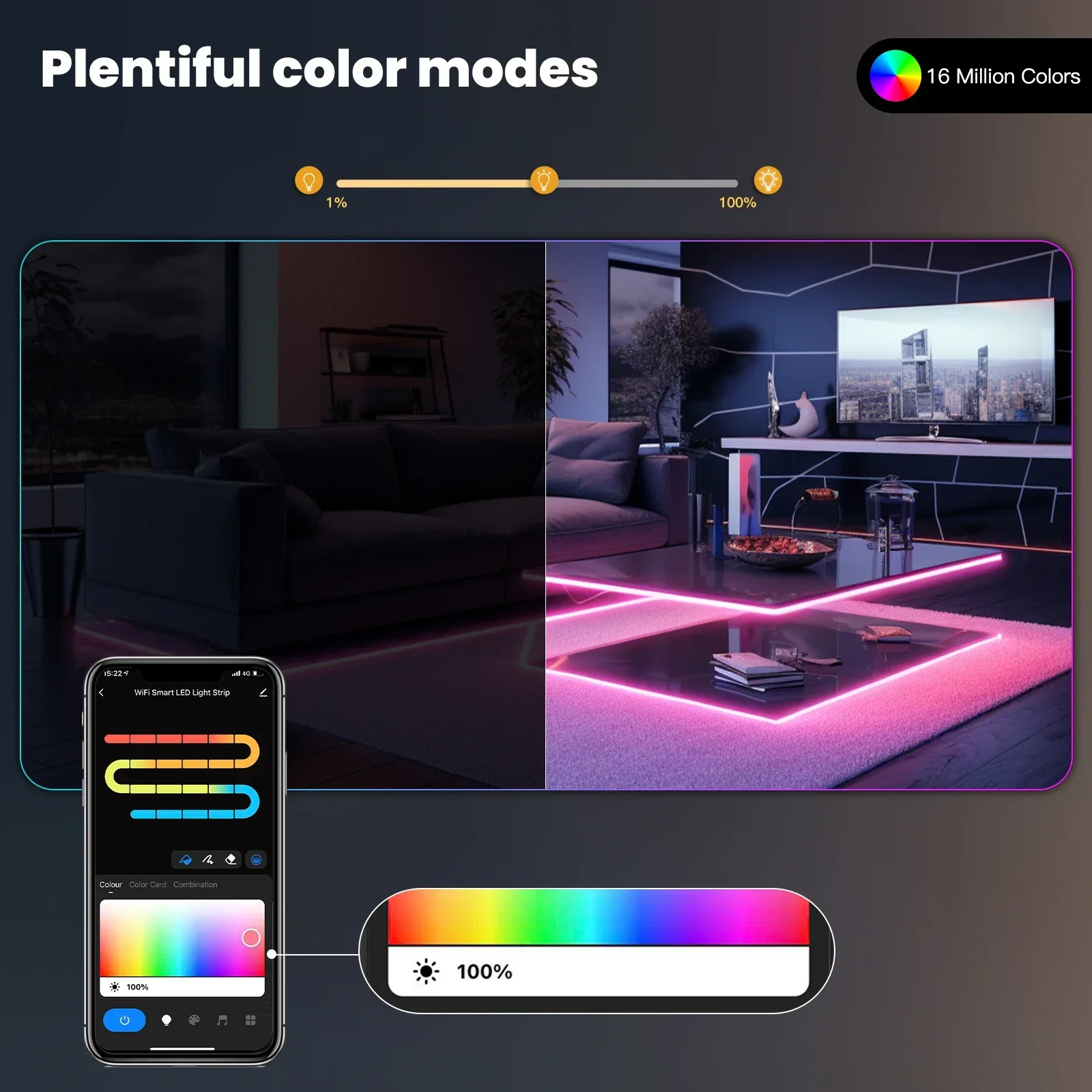 يوفر الشريط مجموعة واسعة من تأثيرات الإضاءة، بما في ذلك تأثير تدفق الضوء الساحر الذي يعزز أجواء المكان ويخلق بيئة مريحة وهادئة.