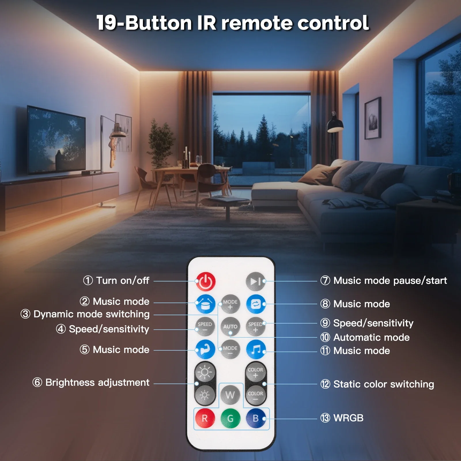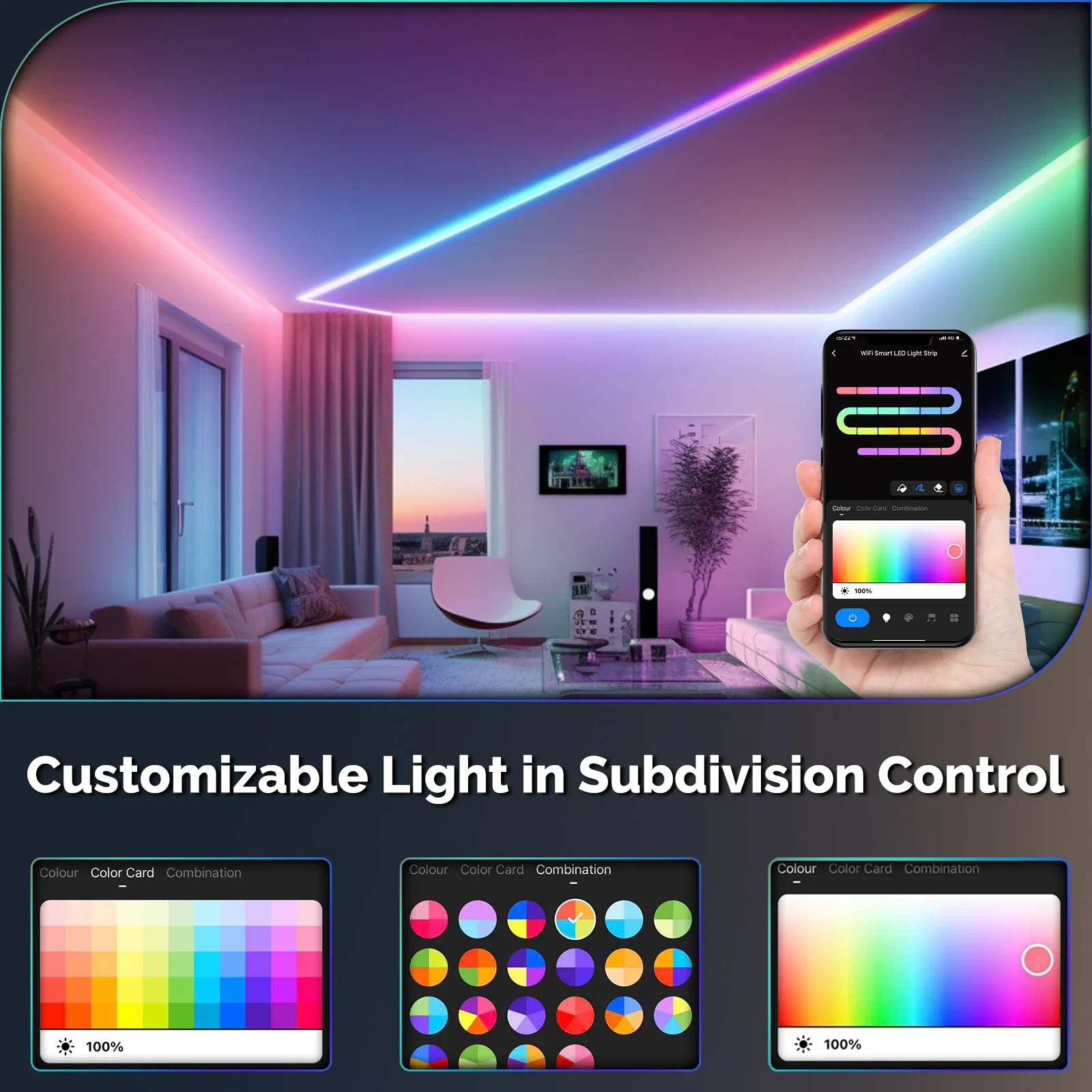 يمكن التحكم في تشغيل/إيقاف الشريط وألوانه في أقسام فرعية مختلفة حسب الحاجة، بحيث يظهر كل موضع من الشريط تأثير إضاءة مختلف.