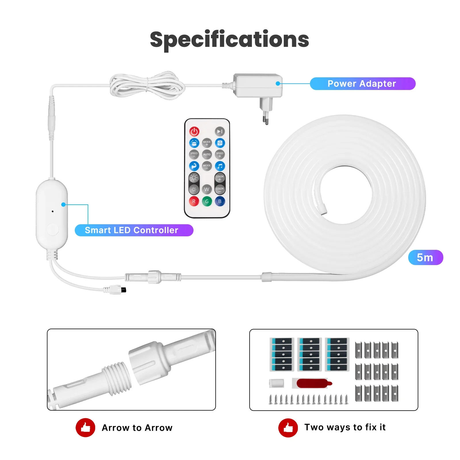 يأتي الشريط مع ملحقات كاملة لتثبيت كابل الشريط الضوئي.