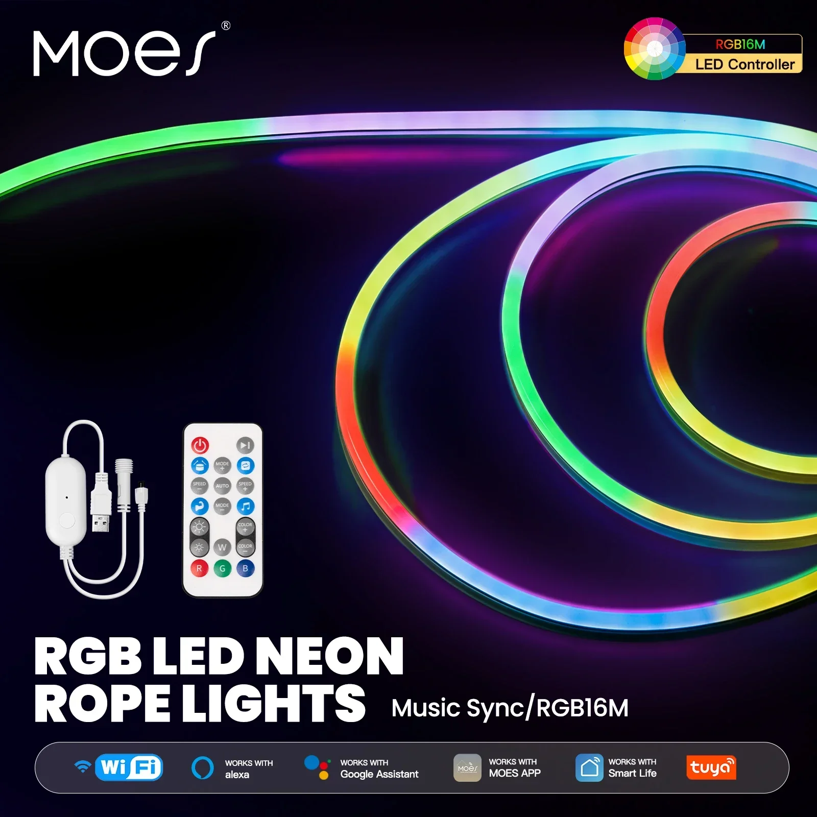 يمكن تفعيل وضع الموسيقى من خلال تطبيق MOES للاستمتاع بإضاءة تفاعلية تنبض مع إيقاع الموسيقى.