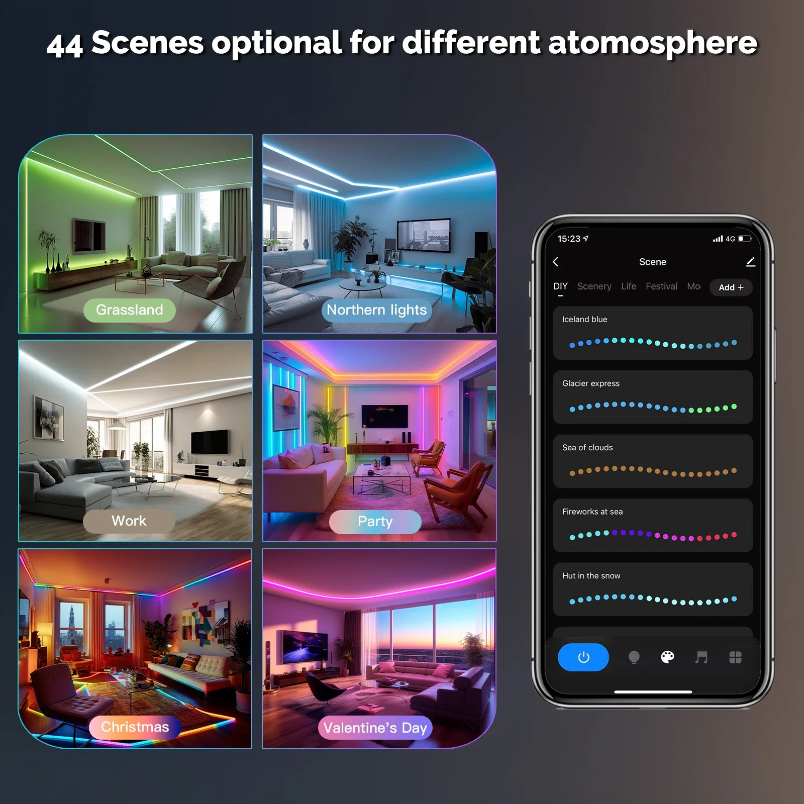 استمتع بمشاهد إضاءة مرنة واختر الإضاءة المفضلة لديك بسهولة.